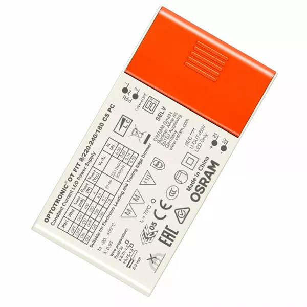 | 4062172007535 | OT FIT 8/220-240/180 CS PC | 2,7 – 7,2W | 100-120-155-180 mA | 27 – 40Vdc | 0,95 | >80 | <20 | <5 | IP 20 | 95 | 50 | 22 |